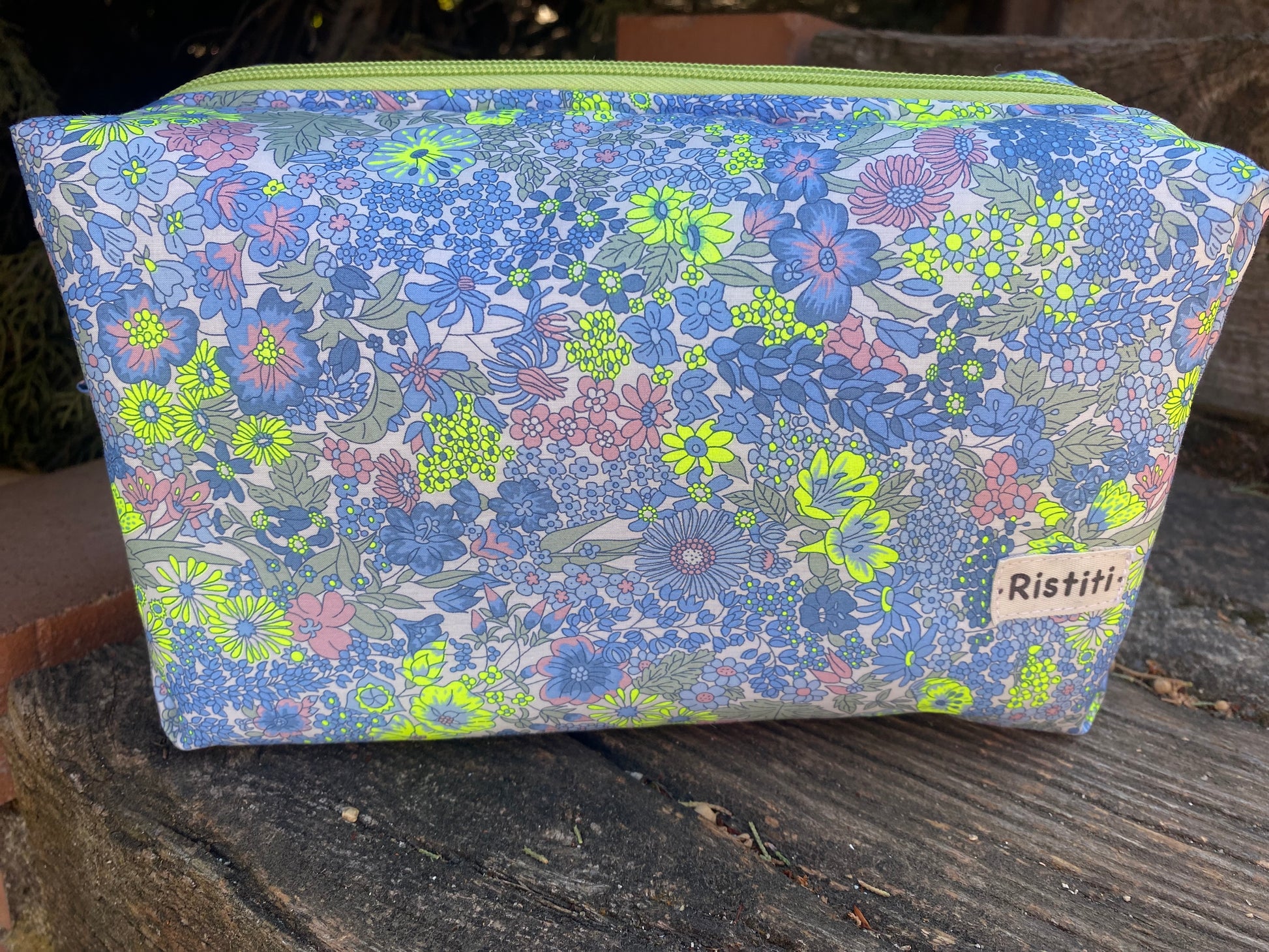 Neceser hecho a mano con tela Liberty, acolchado liso y forro plastificado. Cierre de cremallera. De gran capacidad.