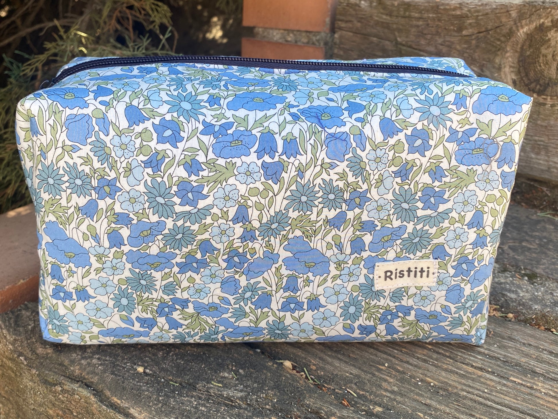 Neceser hecho a mano con tela Liberty, acolchado liso y forro plastificado. Cierre de cremallera. De gran capacidad.