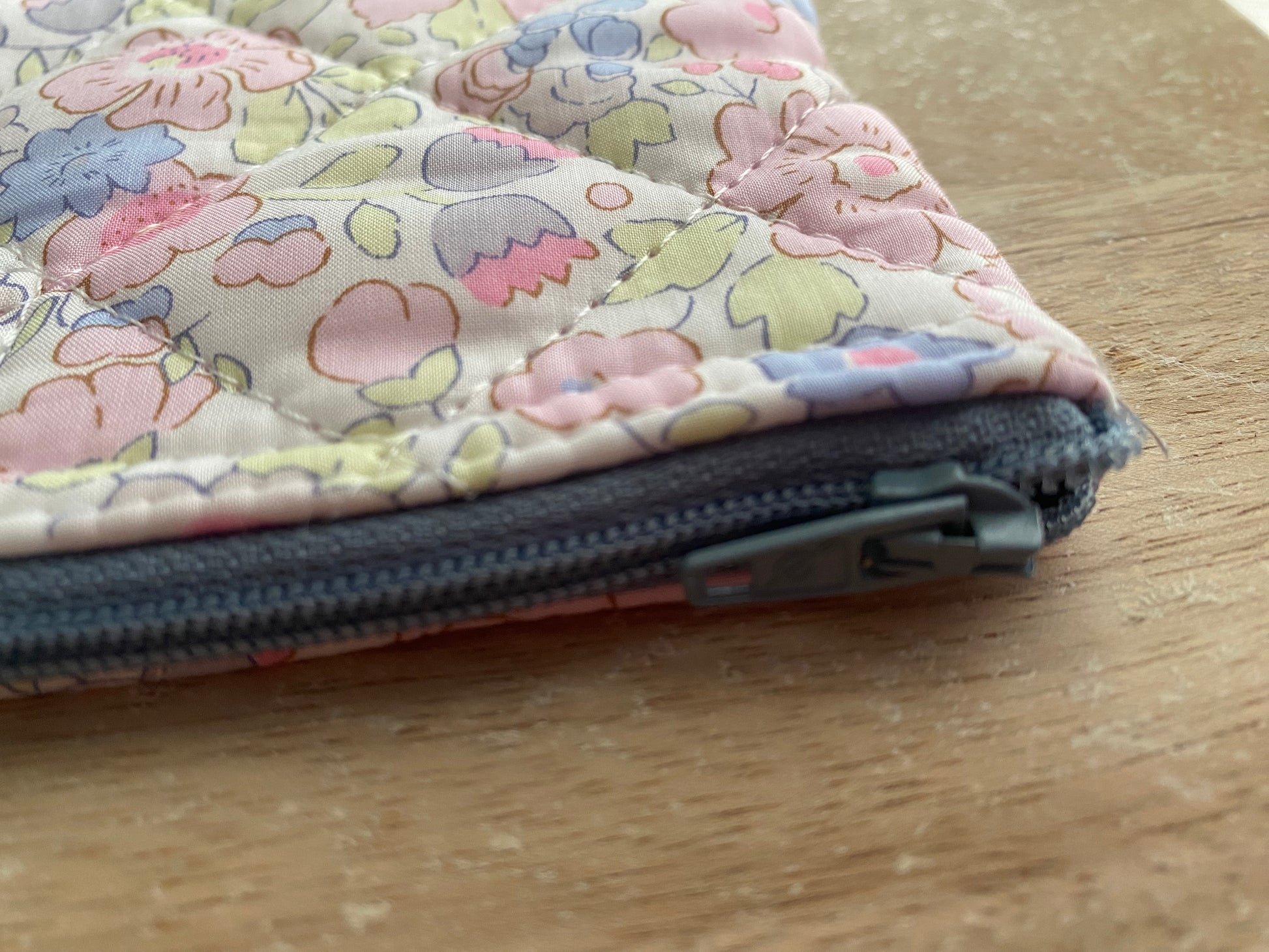 Monedero con cierre de cremallera. Elaborado con tela Liberty y forro interior de algodón. Ideal para usar como monedero o para guardar artículos de joyería, tales como pendientes, pulseras, anillos...